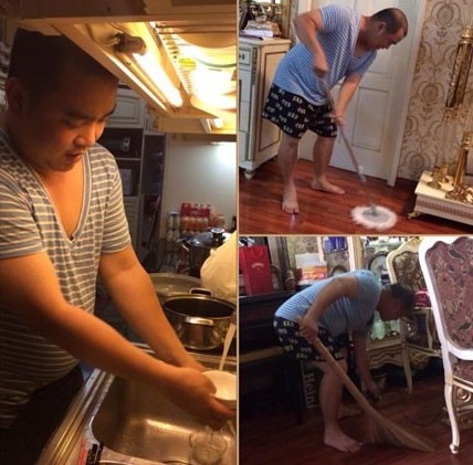 San sẻ công việc nội trợ với những cô vợ nổi tiếng là cách mà các ông chồng trong showbiz Việt thường áp dụng để giữ lửa hạnh phúc gia đình.