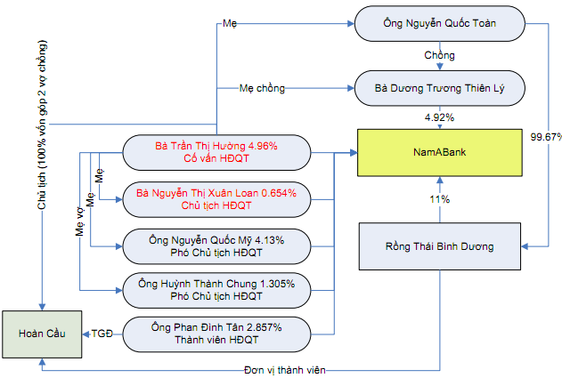 Đó là chưa tính tới một số tổ chức như Hoàn Cầu, Rồng Thái Bình Dương cũng là những doanh nghiệp, công ty thuộc sở hữu của các thành viên trong đại gia đình này đang có tỷ lệ sở hữu lớn tại ngân hàng Nam Á.