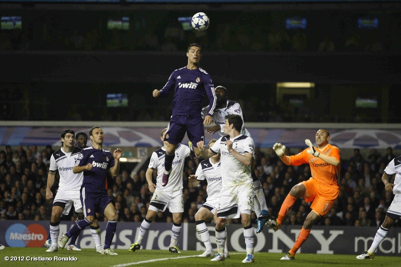 Ngay cả những thủ môn cao lớn như Heurelho Gomes của Tottenham (1m91) cũng phải bất lực trước pha không chiến của Ronaldo.