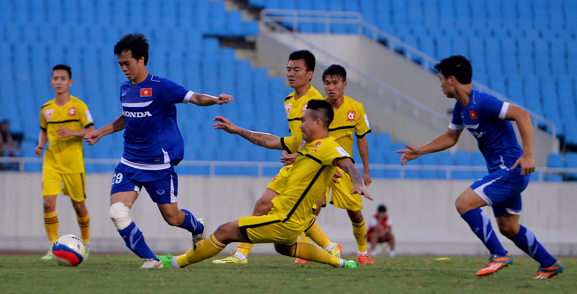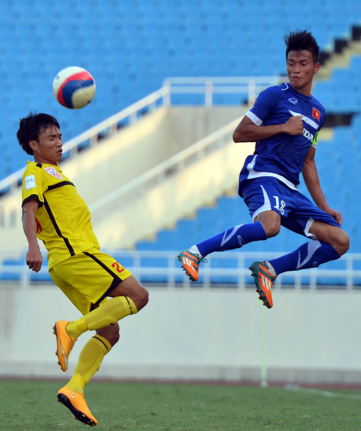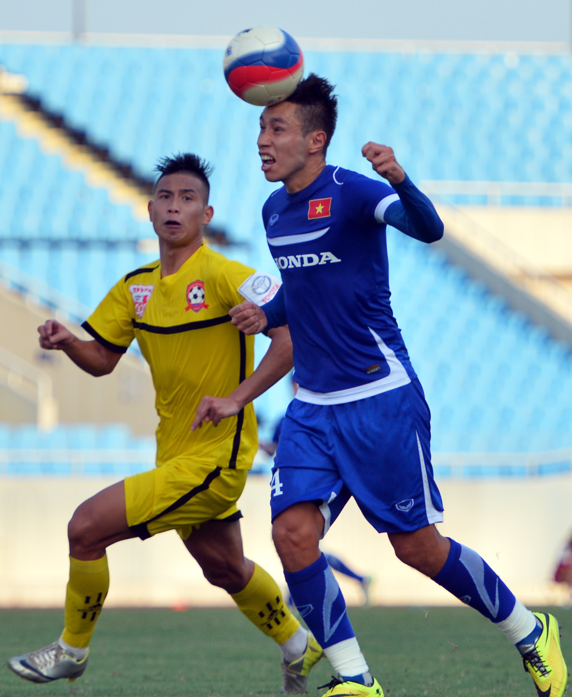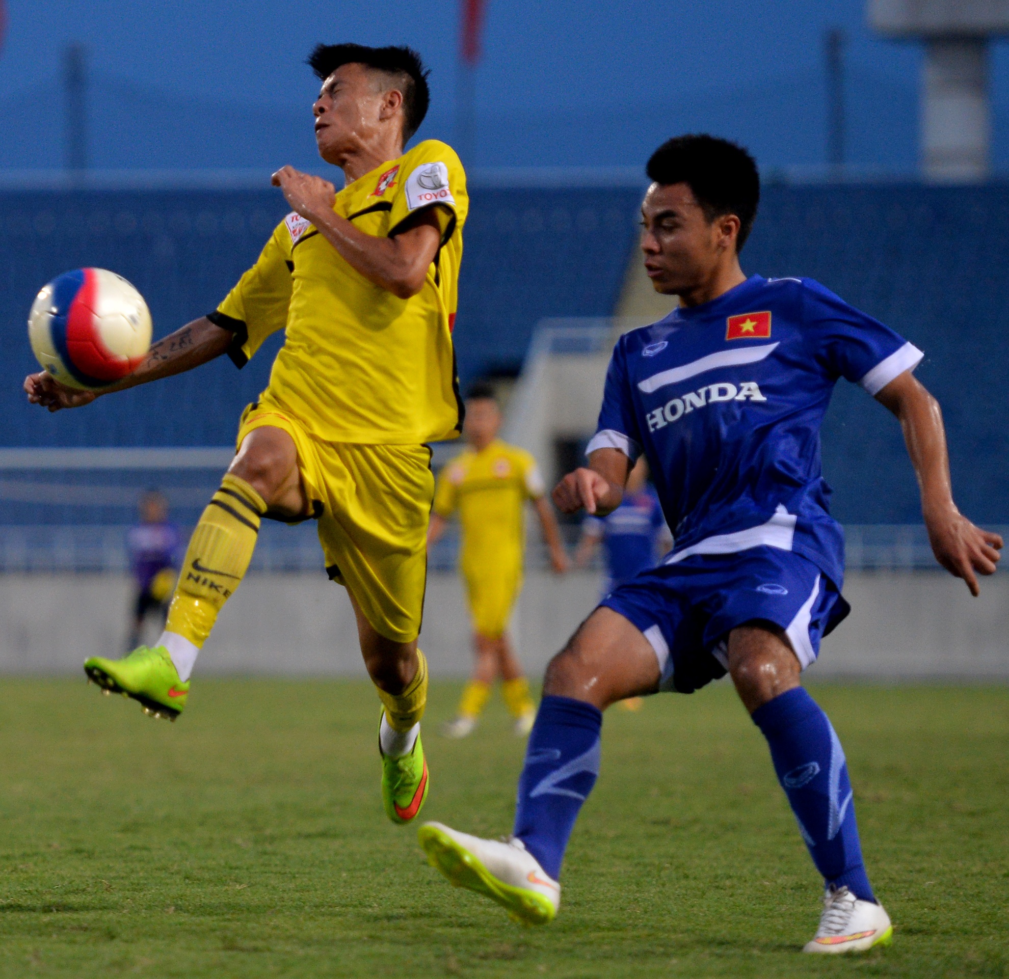 | Các học trò của HLV Miura cầm bóng nhiều hơn nhưng các pha ban bật ở hàng công chưa được nhuần nhuyễn nên đã gặp nhiều khó khăn trong việc tìm đường tiếp cận khung thành của thủ môn Xuân Việt. |