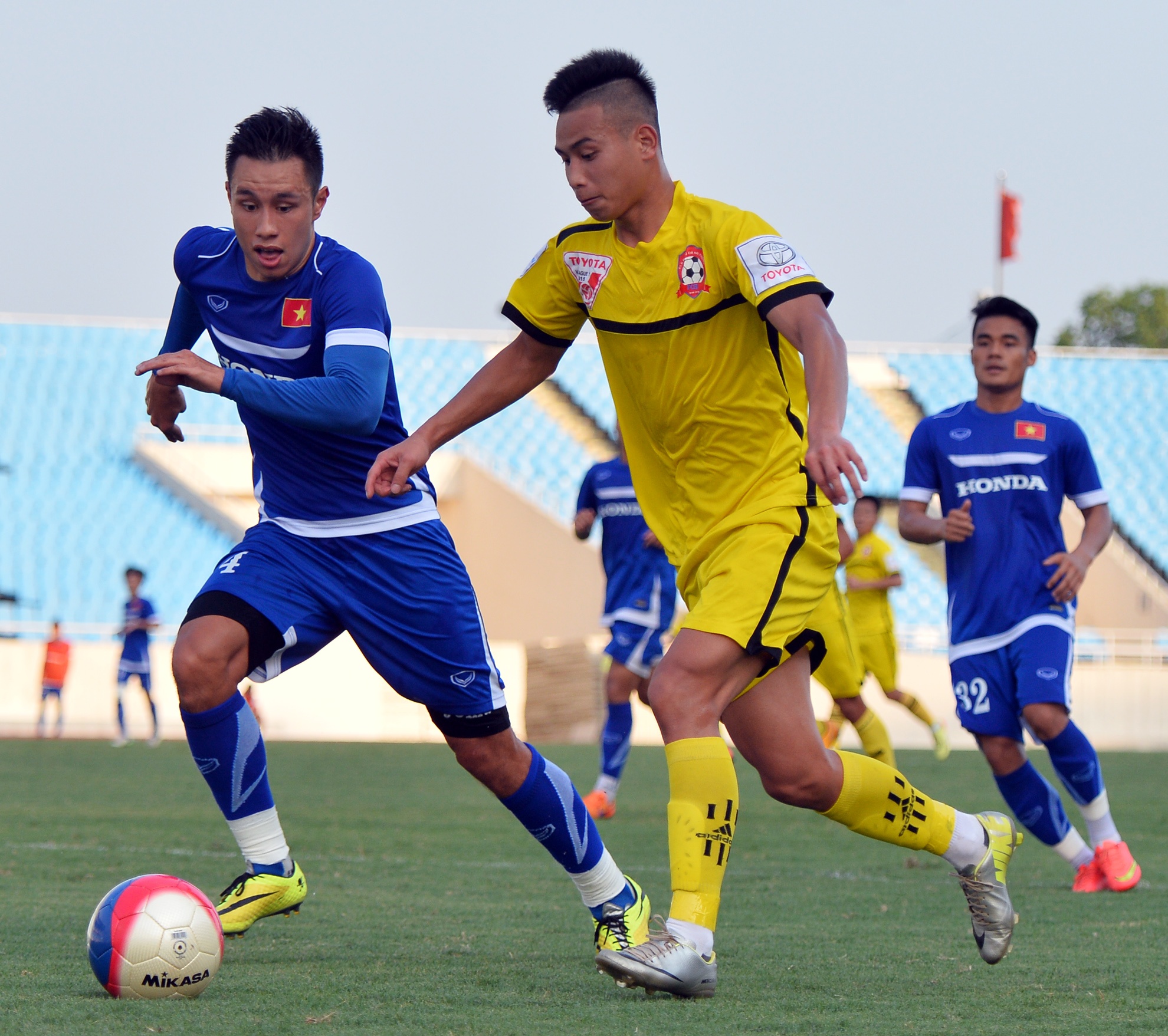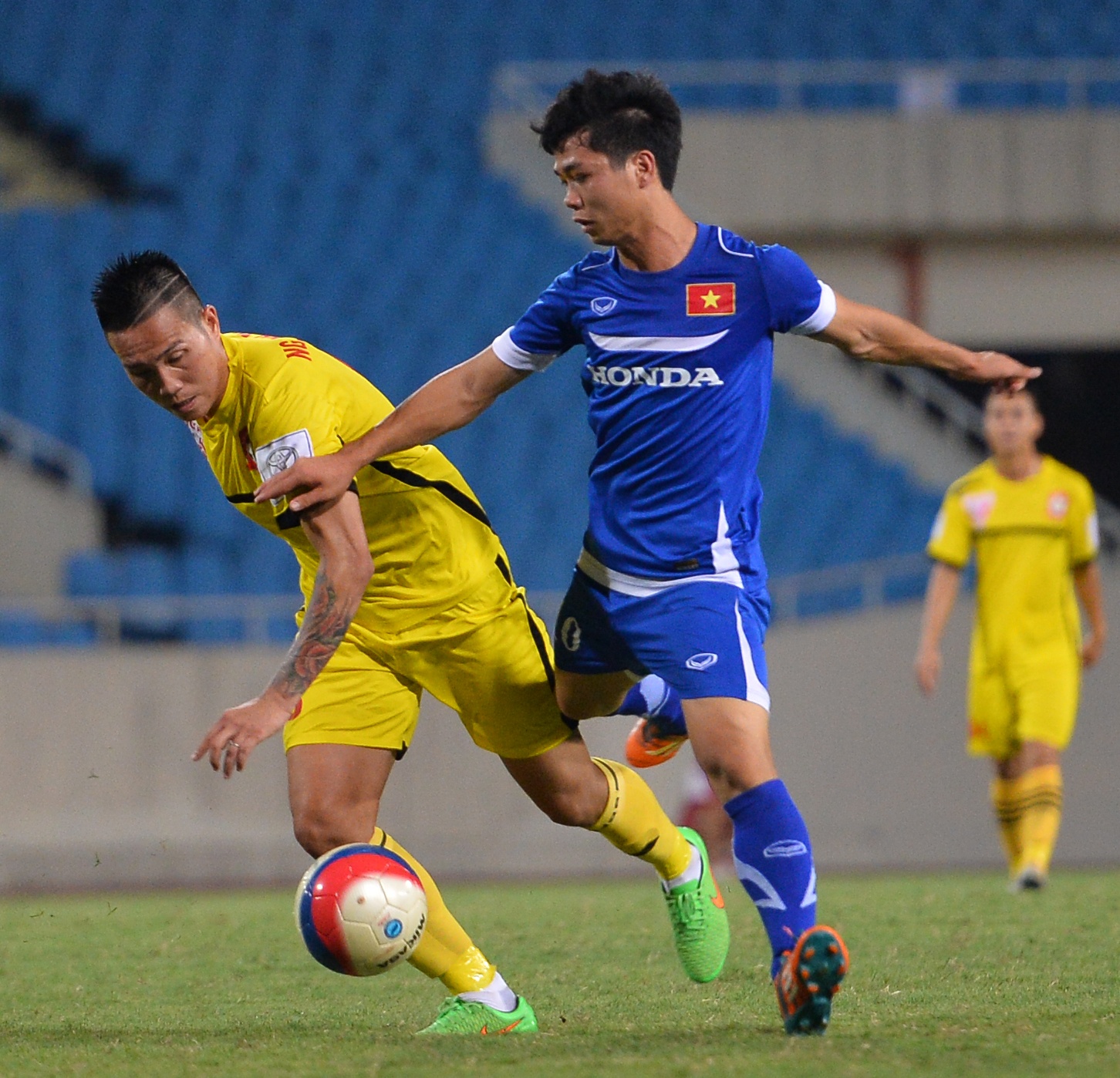 | Các cầu thủ mặc áo xanh như Tuấn Tài hay Công Phượng, Văn Toàn đều bỏ lỡ một số cơ hội. Đáng tiếc nhất là pha dứt điểm vọt xà ngang khung thành đối phương của tiền đạo HAGL ở phút 78. |