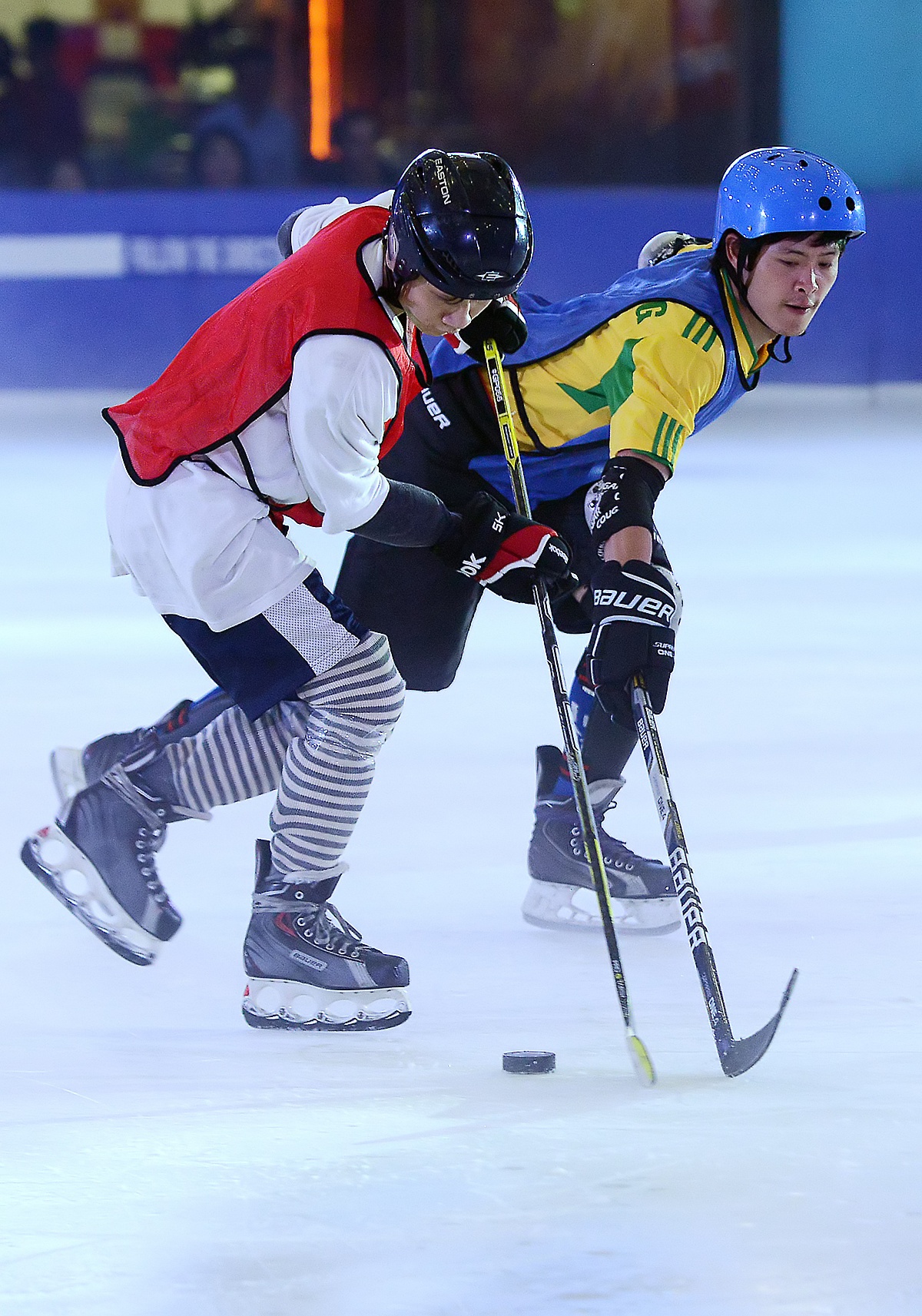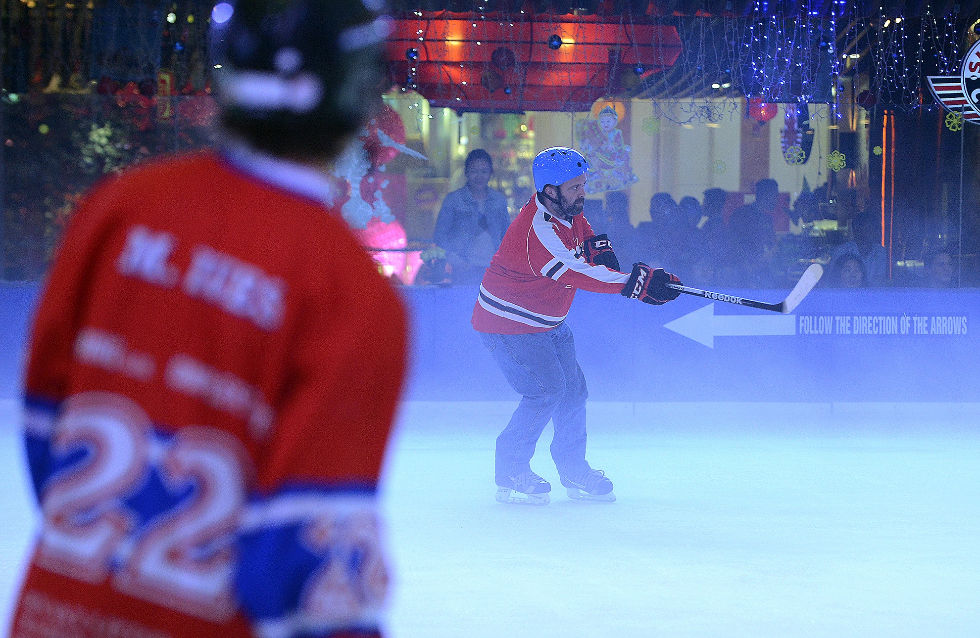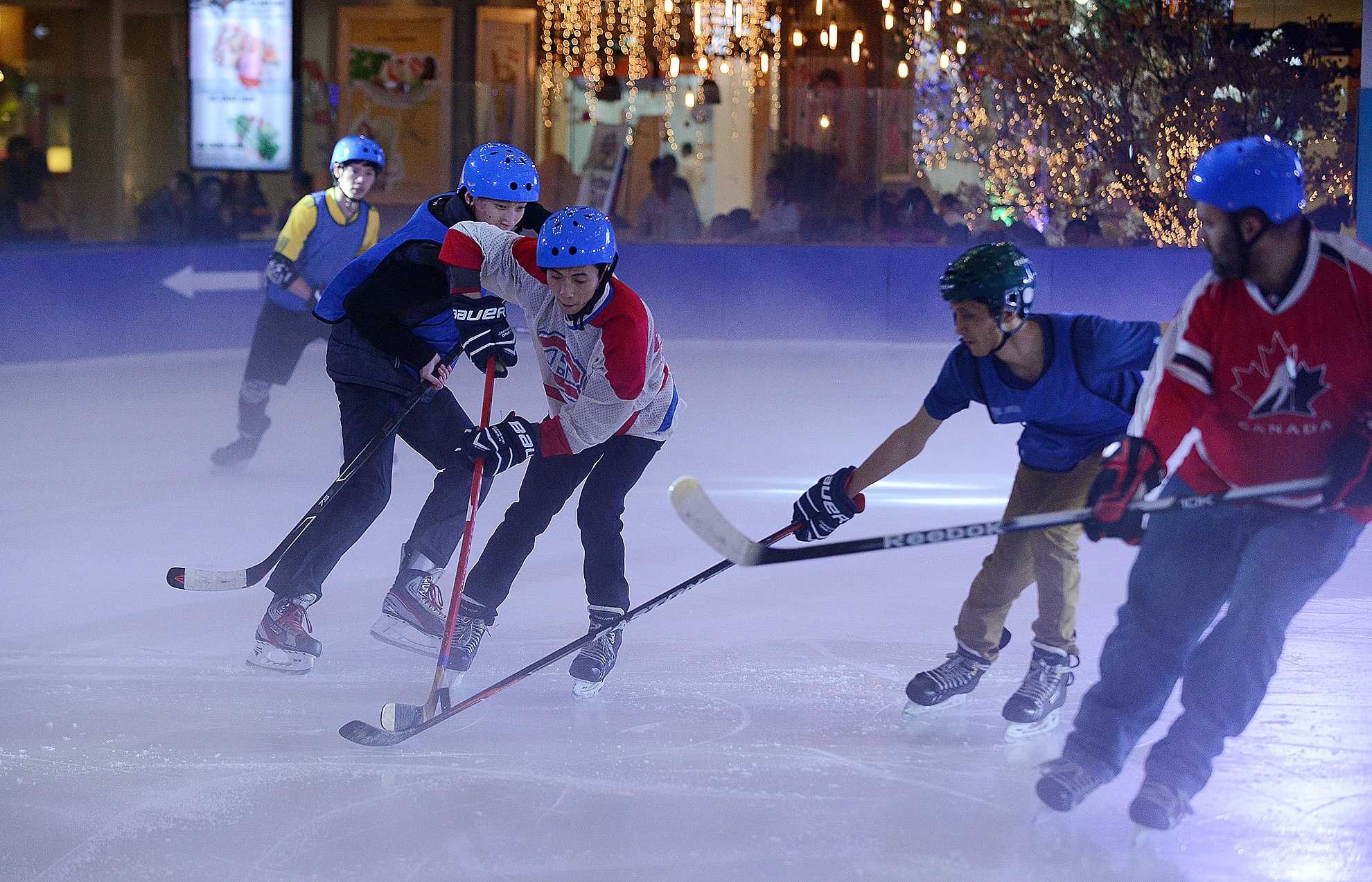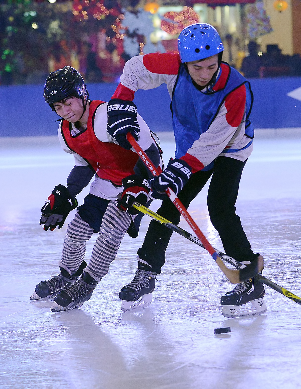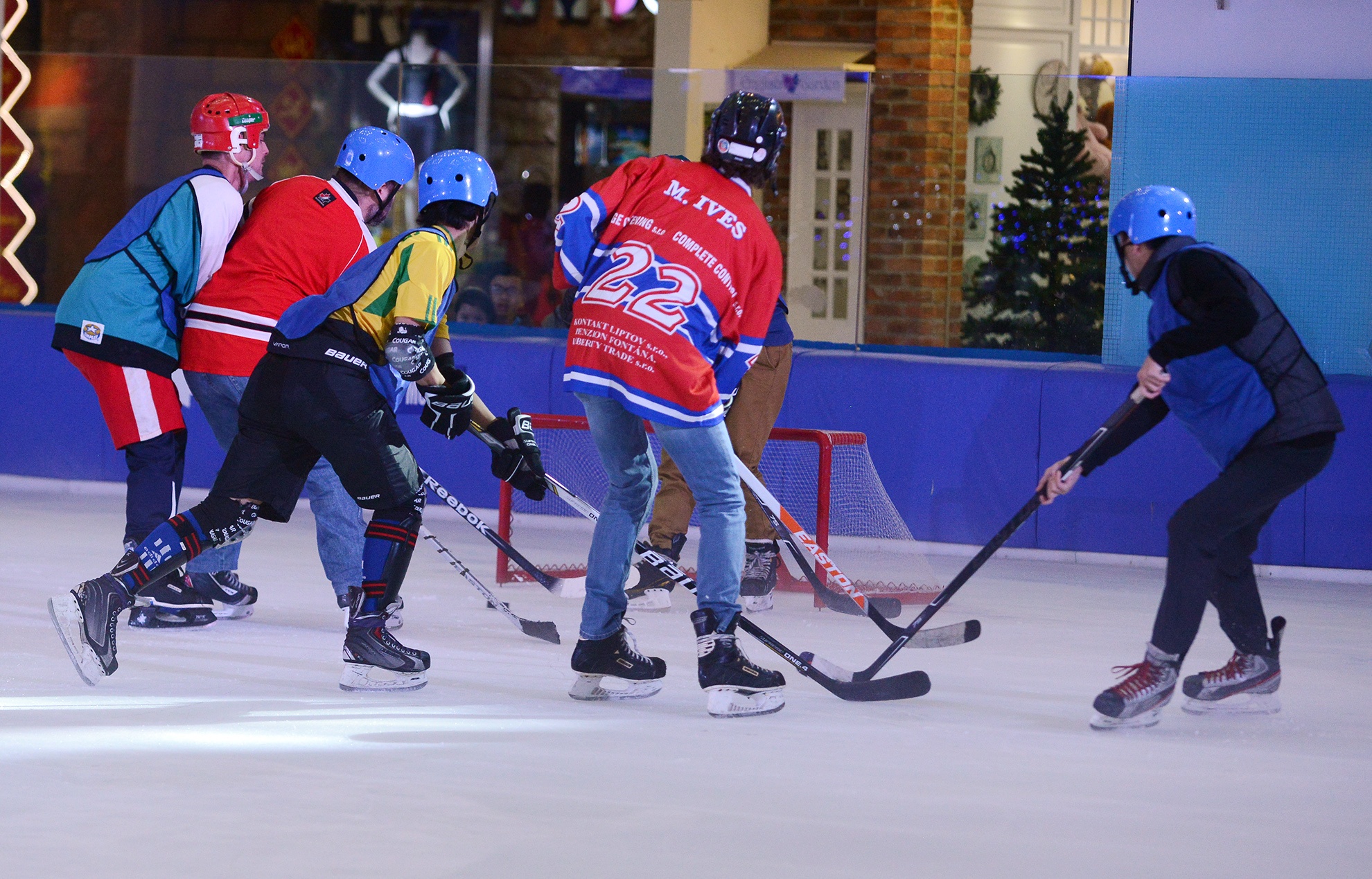 | Tại khu vực sân trượt băng của trung tâm thương mại dưới lòng đất Royal City (Hà Nội), bộ môn thể thao Khúc côn cầu lần đầu tiên được biểu diễn. |