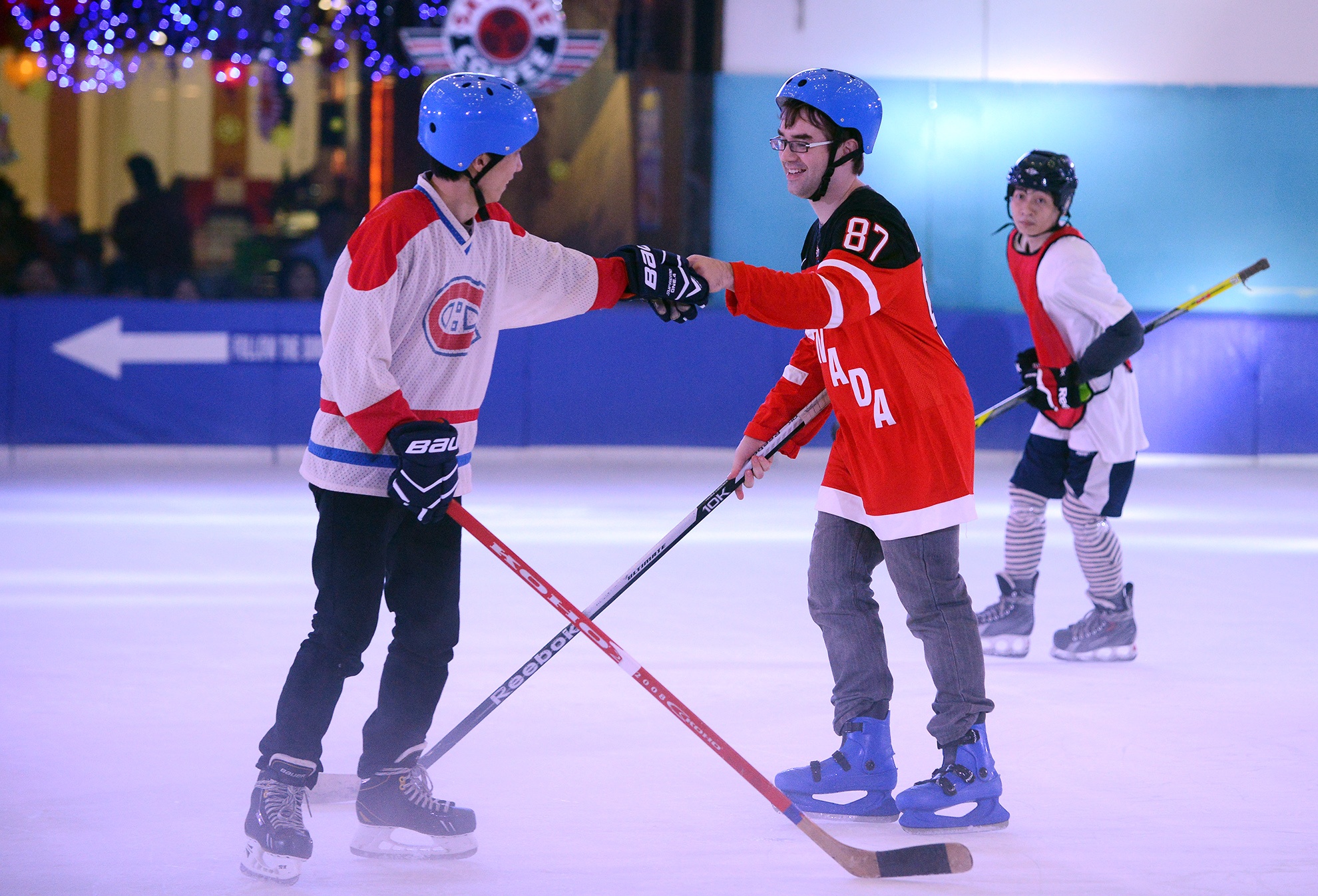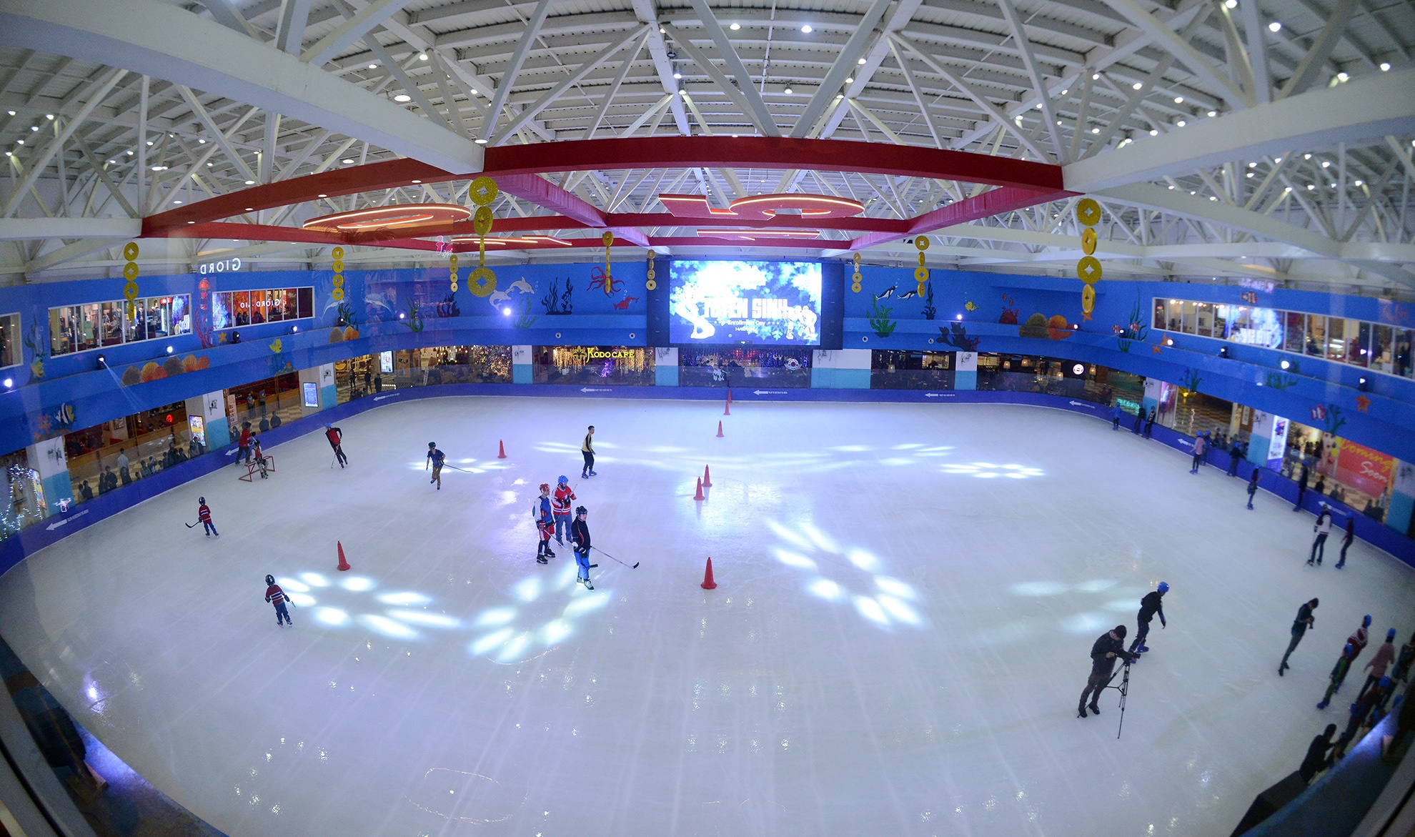 Sân trượt băng dưới lòng đất bên trong Royal City đã trở thành địa điểm chơi bộ môn thể thao đến từ xứ lạnh - Hockey từ nhiều ngày qua, thu hút đông đảo người xem.