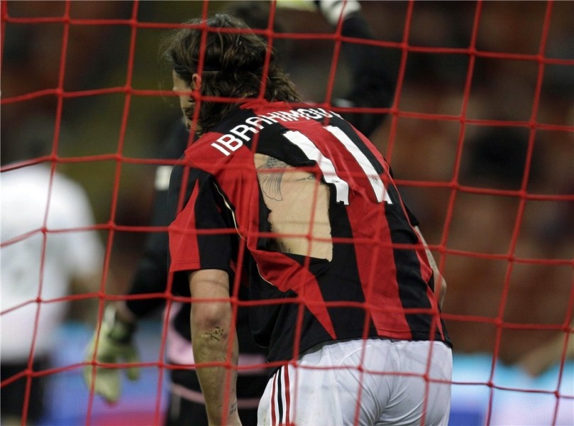 Ibrahimovic cũng từng hở một khoảng lưng rộng vì vết rách lưng áo.