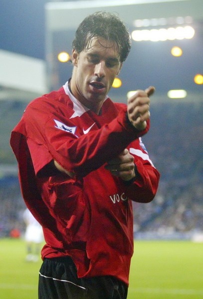 Hình ảnh cầu thủ Manchester United Ruud van Nistelrooy lúng túng không biết xử lý thế nào với chiếc áo rách năm 2004.