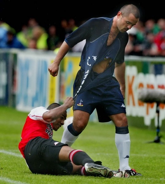 Cầu thủ Portsmouth tức giận khi bị xé áo trên sân.