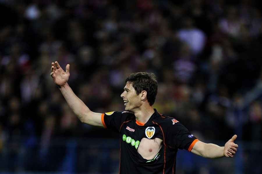 Cầu thủ Valencia lộ ngực hài hước vì áo rách.