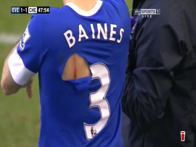 Trong trận Chelsea gặp Everton tại Premier League 2012, Baines không những bị đối phương kéo rách áo mà còn bị xước một vệt dài trên lưng.