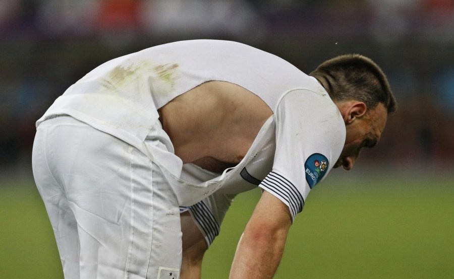 Trong trận trận tứ kết EURO 2012 gặp Tây Ban Nha, áo đấu của ngôi sao người Pháp Ribery cũng tả tơi chỉ sau 47 phút thi đấu đầu tiên.