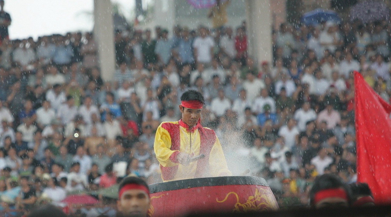 | Lễ hội chọi trâu diễn ra trong cơn mưa nặng hạt lúc 8h sáng nay. Vòng chung kết chọi trâu Đồ Sơn năm 2013 gồm 16 trâu, thi đấu 15 trận theo hình thức đối kháng và loại trực tiếp để chọn ra 'nhà' vô địch. |