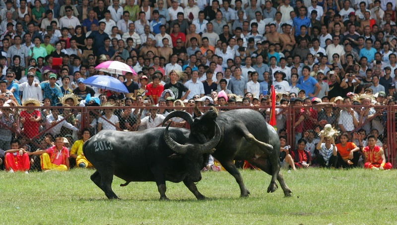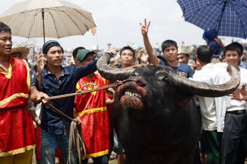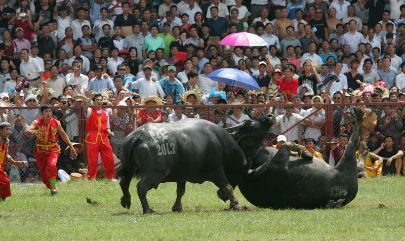 | Giải đấu năm nay chứng kiến nhiều miếng đánh rất độc đáo của các "ông trâu" |