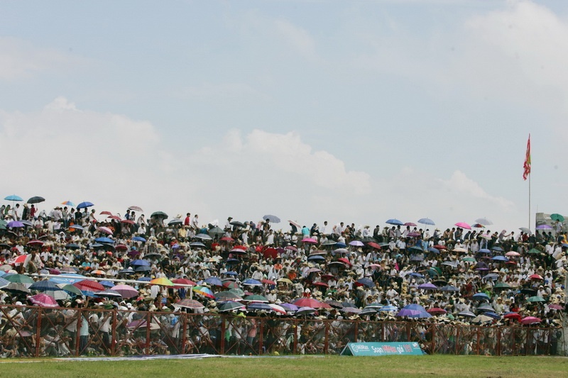 Như thường lệ, khán đài SVĐ quận Đồ Sơn không còn một chỗ trống. Thậm chí BTC còn phải cho người dân tràn xuống đường piste.