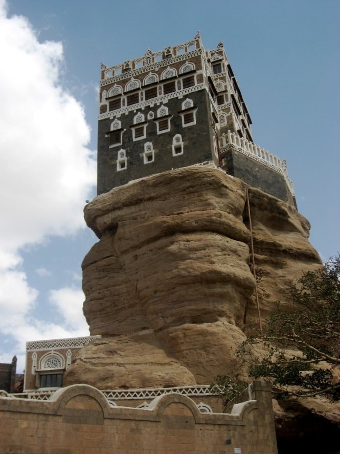 | Dhar Al-Hajjar (còn gọi là lâu đài Đá) nằm trên đỉnh một đỉnh đồi cao 50m, cách thành phố Sanaa 15km về phía đông bắc, là một trong những công trình nổi tiếng nhất Yemen. Ảnh: pin it |