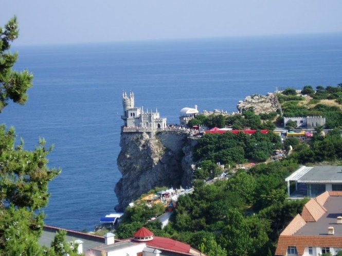 | Lâu đài Tổ Chim yến, biểu tượng du lịch của Crimea, một bán đảo phía nam Ukraine, được xây dựng trên một tảng đá hẹp thuộc vách núi Aurore, cách mặt nước biển Đen 40m. Ảnh: panoramio |