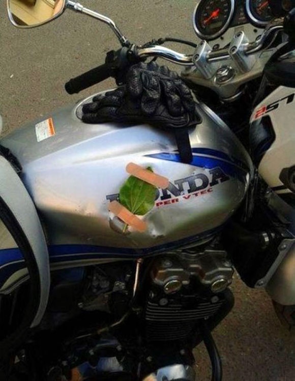 | Bình xăng thủng ư? Chỉ cần 1 chiếc lá xanh và 2 miếng urgo. |