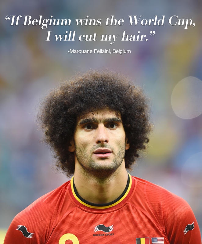 "Nếu Bỉ vô địch World Cup, tôi hứa sẽ gọt đầu" - ngôi sao Marouane Fellaini tuyên bố. Tuy nhiên, sau khi bị Argentina hạ gục, Bỉ đã không thể lọt vào vòng bán kết. Và Fellaini dĩ nhiên không có cơ hội thực hiện lời hứa cắt gọt mái tóc xù đặc trưng của mình.