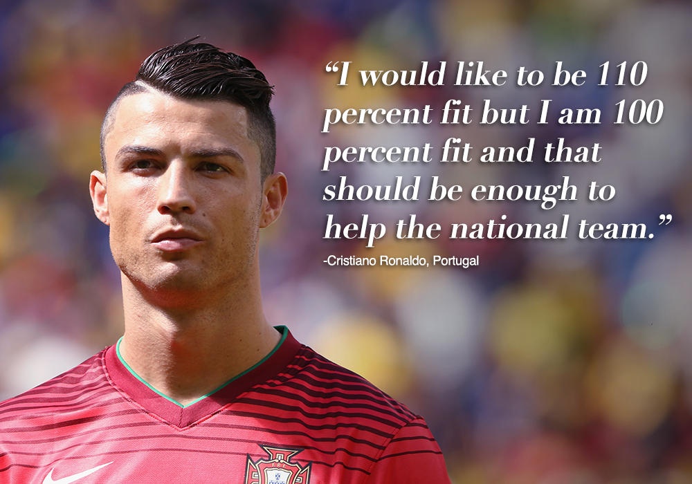 "Tôi muốn đạt 110% phong độ, nhưng chỉ với 100% phong độ hiện tại tôi cũng đủ sức giúp đội nhà" - Ronaldo hùng hồn phát biểu về tình trạng bình phục chấn thương của mình trước trận bóng quan trọng gặp Đức ngày 16/6. Tuy nhiên một mình Ronaldo không thể vực dậy cả tuyển Bồ Đào Nha. Cuối cùng, ngôi sao sáng giá nhất hành tinh cũng phải chia tay World Cup từ rất sớm.