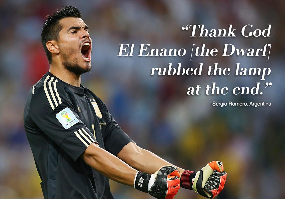 "Ơn Chúa. Cuối cùng, chú lùn cũng chạm vào cây đèn thần" - Cầu thủ người Argentina Romero vui sướng chia sẻ.