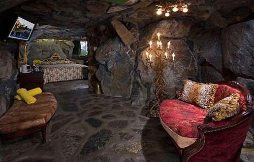 Khó mà biết rằng căn phòng này được xây dựng bên trong một hang động thực sự hay chỉ là một thiết kế được mô phỏng theo như tên gọi của nó, phòng Rock Bottom - Madonna Inn (San Luis Obispo, California, Mỹ).