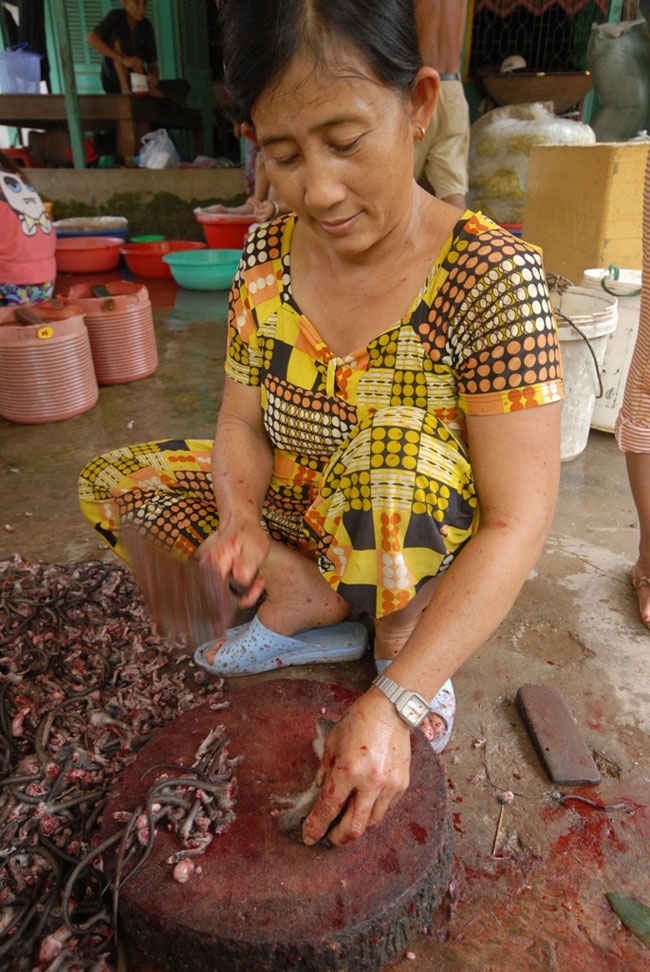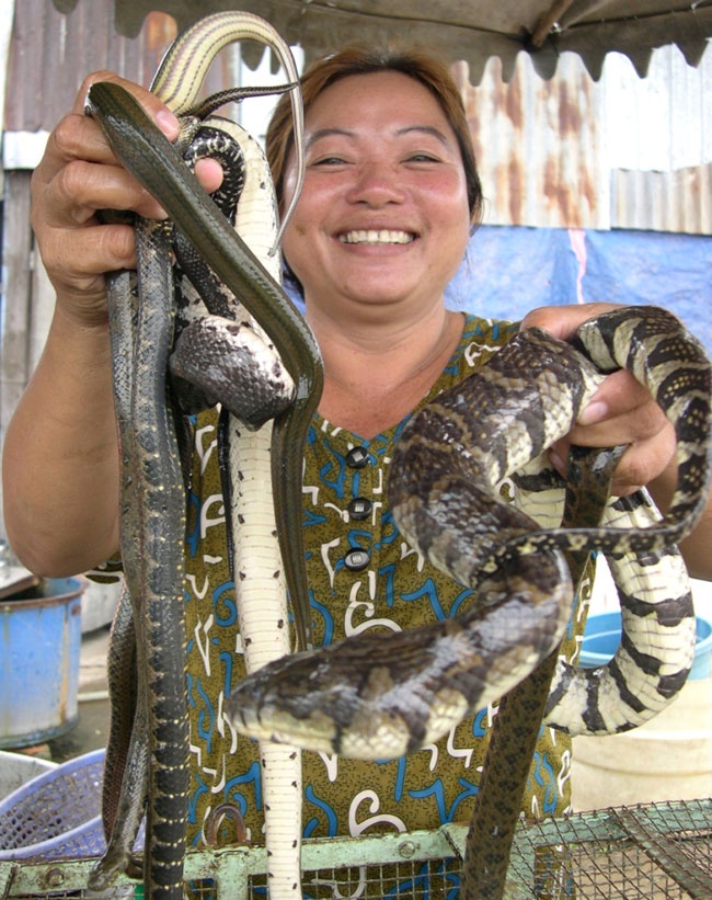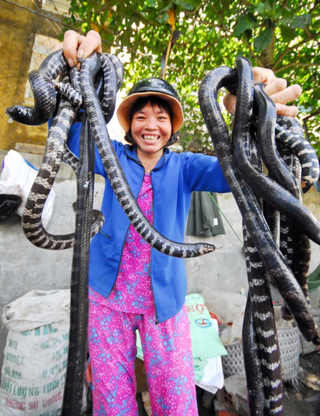 Dù biết việc mình làm chỉ cần sơ xuất nhỏ có thể mất mạng như chơi, nhưng những phụ nữ chân yếu tay mềm này lại không chút sợ sệt. "Mùa nào thức ấy", khi việc đồng áng kết thúc, lũ về là họ theo con nước bắt rắn, săn chuột, rồi lập hẳn những chợ hàng "độc" bán công khai ở nơi đông người qua lại, như ven chợ, các khu du lịch. Cũng có người sang tận Campuchia nhập hàng về để bán cho du khách.