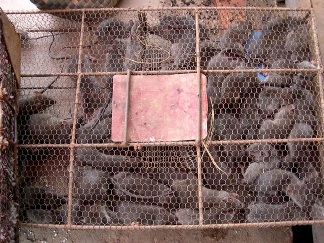Chuột chứa đầy trong rọ chuẩn bị đem đi làm thịt cung cấp cho nhà hàng