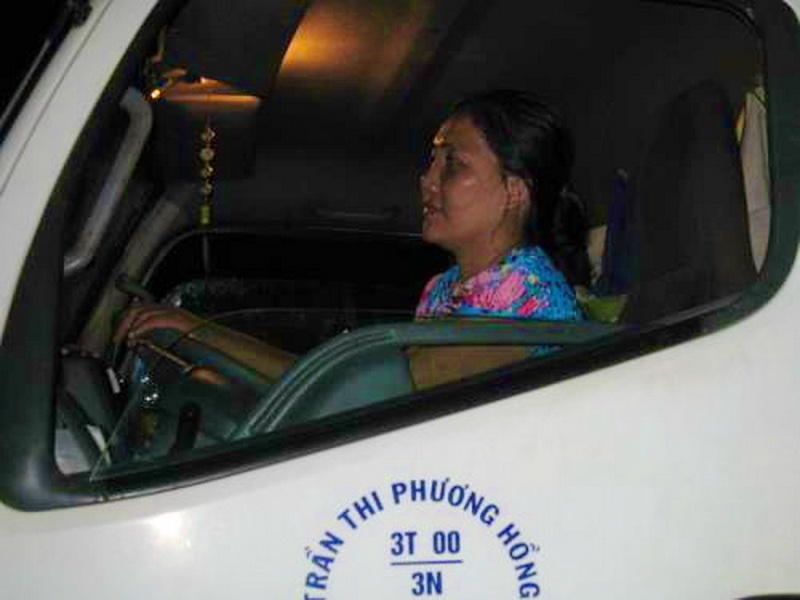 | Hàng đêm tại chợ đầu mối Thủ Đức, TP.HCM người ta vẫn bắt gặp những chị em làm chủ những chiếc xe tải lớn chở rau quả từ miền Tây về đây bán. Mọi người gọi các chị là “nữ hoàng” bóng đêm. Công việc bắt đầu từ chiều, chạy quanh các tỉnh thu gom hoa quả, đến tối xe khởi hành về Sài Gòn. Khoảng nửa đêm xe tới chợ đầu mối, chị xuống hàng và giao hàng cho các chủ mối. Nghỉ ngơi ít giờ lại quay xe đi lấy hàng chở ngược lại miền Tây giao cho các đại lý và kết thúc vào sáng hôm sau. Ảnh: Chị Trần Thị Phương Hồng (quận Thủ Đức) chạy xe tải vào bến để giao hàng cho các chủ mối. |