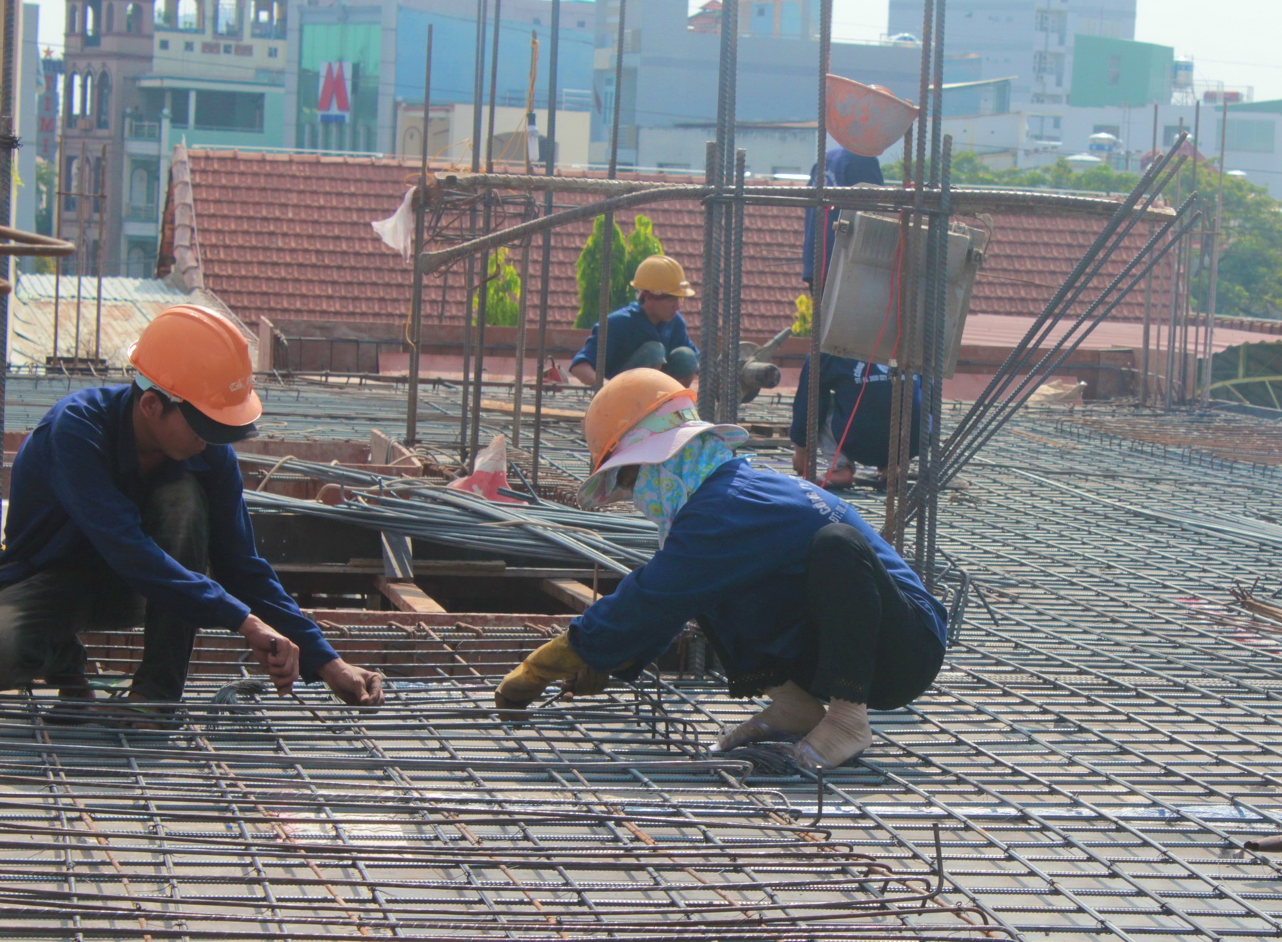 | Theo sự phân công lao động thông thường, những công việc nặng nhọc dành cho nam giới, việc nhẹ do nữ giới đảm nhiệm nhưng không ít phụ nữ vẫn phải làm những công việc vượt quá sức mình, làm bạn với sắt thép, cát đá, xi măng,... Ảnh: Một nữ công nhân xây dựng làm việc như các đồng nghiệp nam trên một công trình xây dựng ở quận Phú Nhuận. |