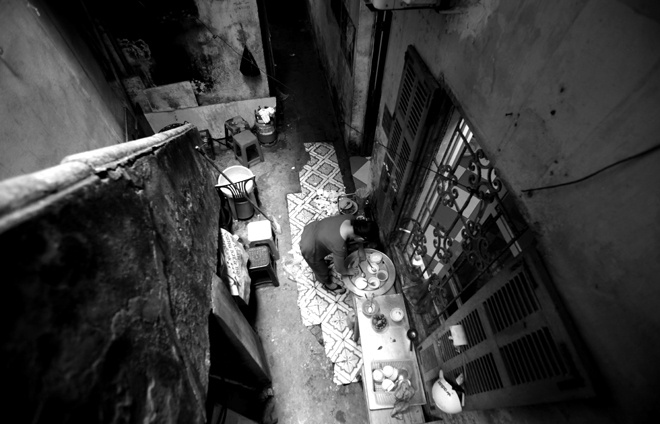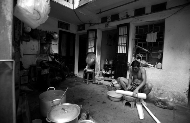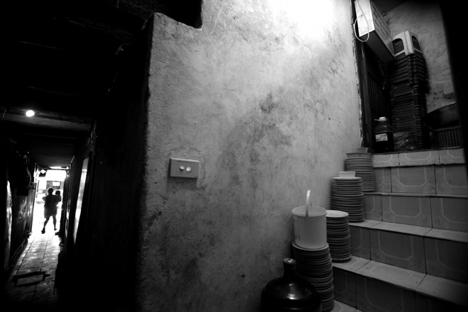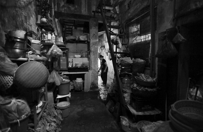 | Lỉnh kỉnh đồ đạc, không gian đặc quánh mùi ẩm ướt, tanh nồng của cống rãnh. |