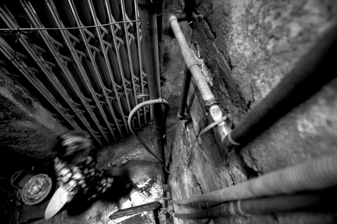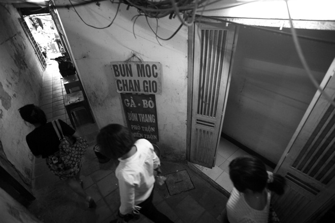 | Bậc thang lên xuống giữa các hộ trở thành cái nơi xếp bát đĩa. |