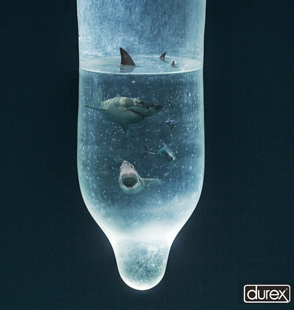 5. Tại Thổ Nhĩ Kỳ, Durex có vẻ như đã nhân đôi ý tưởng với các chú "chim điên" ở trên, song lần này sự giận dữ đến từ những con cá mập.