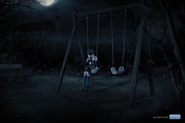 8. Tương tự, ở Honduras, cậu bé này giống như đang đóng phim kinh dị. Kèm với đó là lời nhắn: "Cảm thấy sợ hãi hoặc hãy dùng Durex".