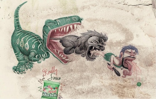 Còn với Marbels, vị kẹo này "sốc" tới mức khủng long cũng phải nôn ra sư tử, và sư tử cũng phải nhả ra anh chàng thổ dân. |
