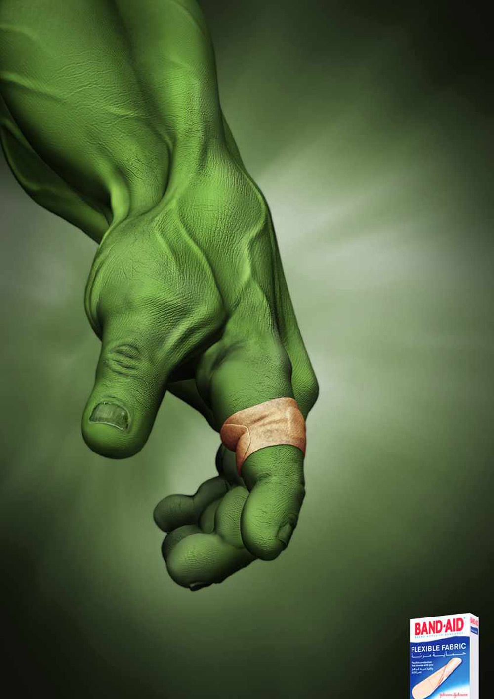 | Cũng sử dụng hình ảnh siêu anh hùng, Band-Aid cho thấy ngay cả người khổng lồ xanh Hulk cũng cần đến họ. |