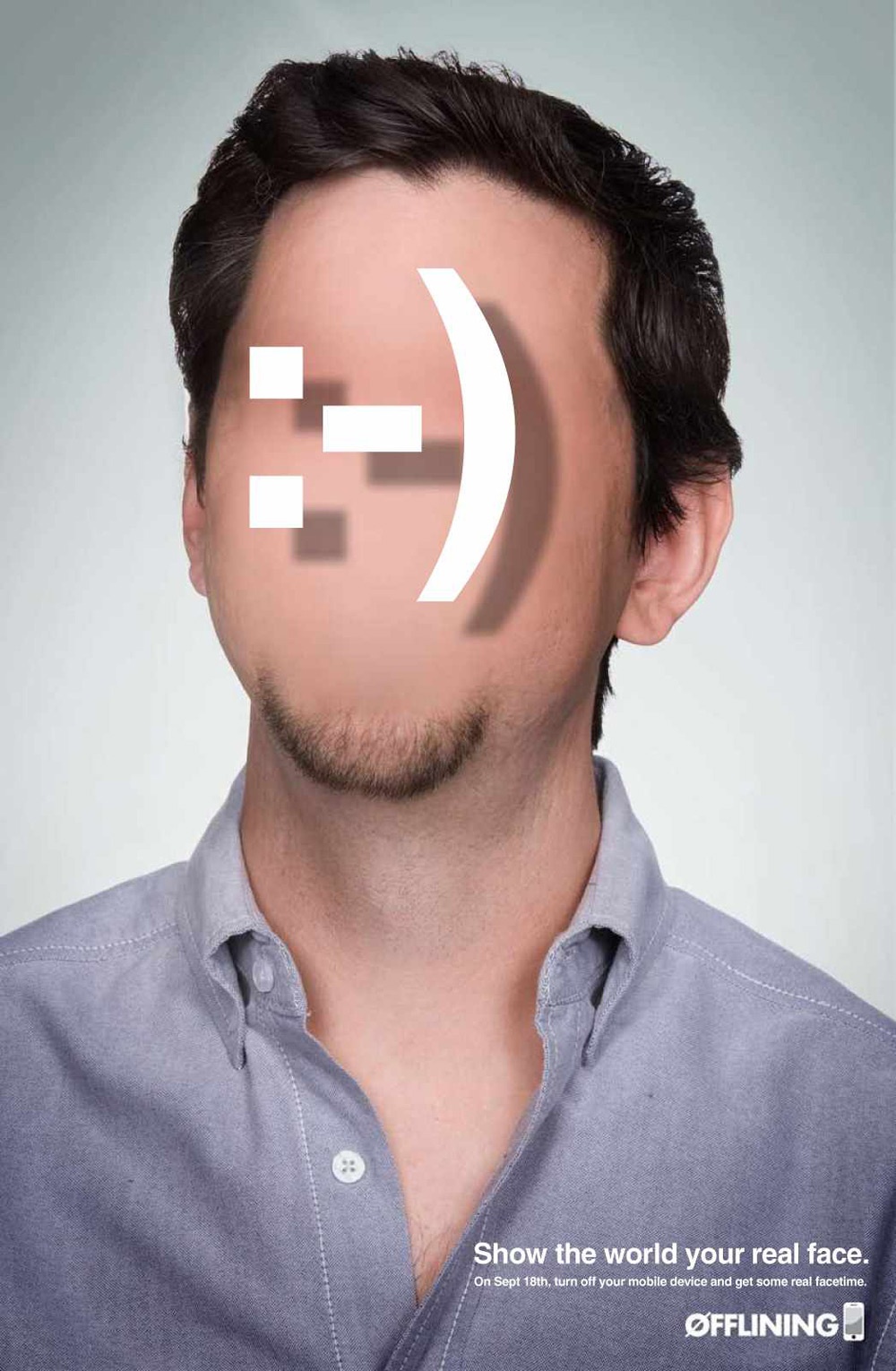 | Tiếp đến là quảng cáo khuyến khích mọi người dừng sử dụng các thiết bị kết nối Internet như điện thoại di động để "cho người khác thấy khuôn mặt thực sự của bạn". |