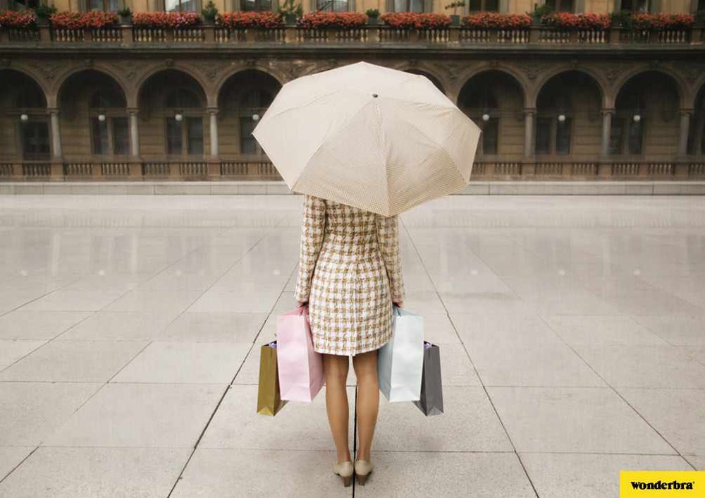 Quảng cáo của hãng chuyên về áo ngực Wonderbra, câu hỏi đặt ra là người phụ nữ giữ chiếc ô bằng gì khi hai tay cô ấy còn đang bận xách đồ? |