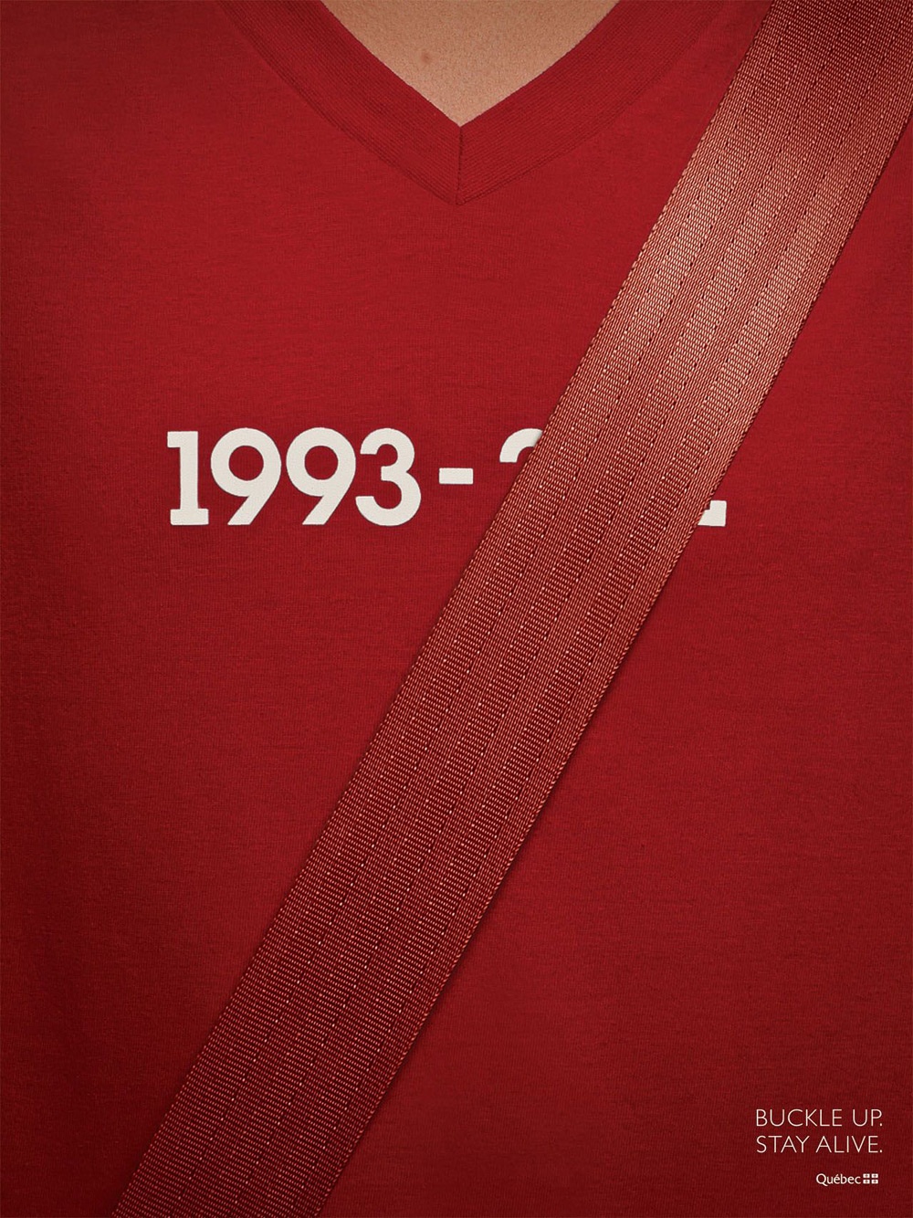 | Sinh năm 1993, thời gian mất không xác định được do đeo dây an toàn. Đây là lời nhắn nhủ đến những người tham gia giao thông từ Québec, Canada. |