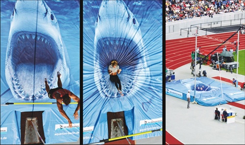 | Viện hải dương Berlin đã tài trợ cho một cuộc thi nhảy sào quốc tế, và kết quả là tất cả các vận động viên phải cố gắng lao mình vào hàm cá mập. |