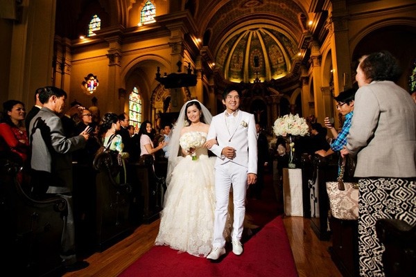 | Sau hôn lễ, nam ca sĩ khéo nịnh vợ bằng lời cám ơn chân thành: "Người vợ yêu của anh. Mỗi khi cuộc đời gặp khó khăn và sóng gió, chính em luôn giúp anh vượt qua, ủng hộ những quyết định của anh, là nhân tố thêm gắn kết gia đình lớn của anh". |