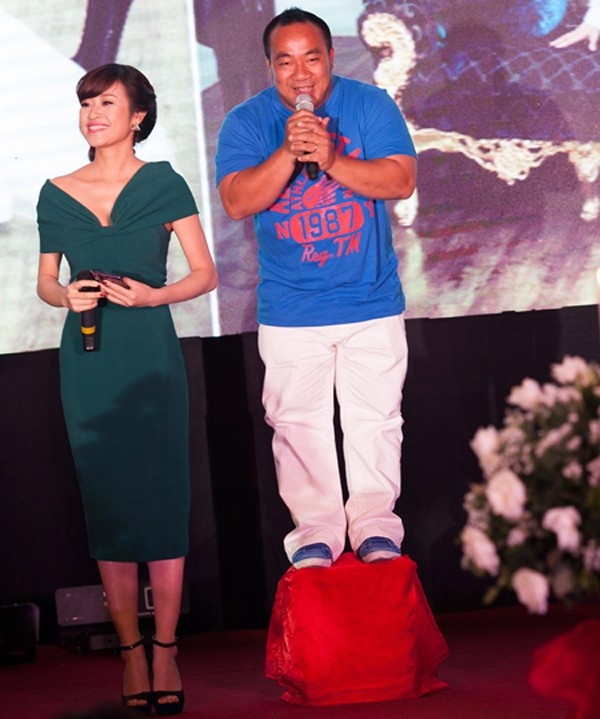 | Chiều cao của Elly Trần là 1,68m, nhưng khi đứng cạnh HIếu Hiền trong lễ trao giải Cánh diều vàng tại Hà Nội, trông cô vẫn nổi bật hơn. Dù cố gắng nhưng nam diễn viên hài cũng chỉ đứng đến vai người đẹp. |