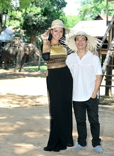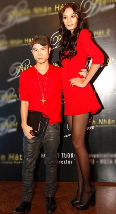 | Đỗ Mạnh Cường luôn tự hào khi xuất hiện cùng cô học trò cao kều Lê Thuý dù anh thấp hơn cô rất nhiều. |