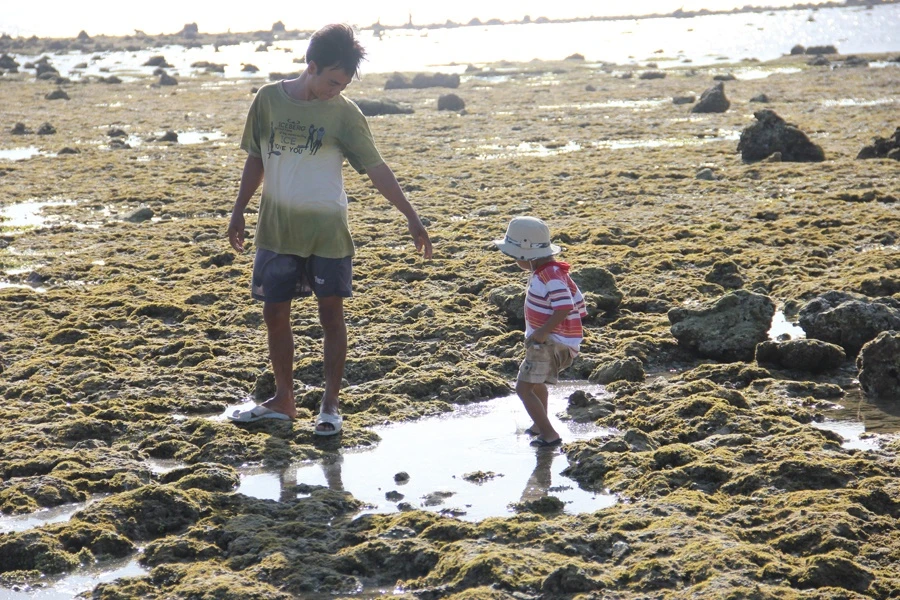 Vào những ngày hè, hàng trăm em bé, chủ yếu đang học cuối bậc tiểu học, THCS kéo nhau ra biển để lặn bắt cá, ốc.... về cải thiện bữa ăn cho gia đình.