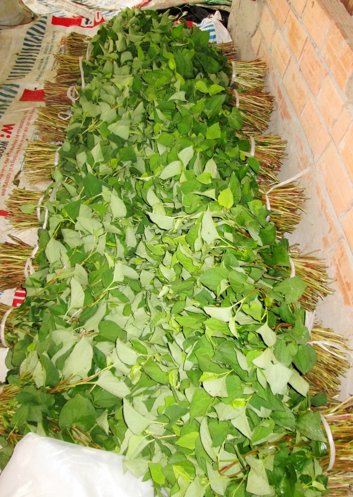 Rau sau khu thu được bó thành những bó 1kg để cung ứng cho thương lái ở TP.HCM và các tỉnh lân cận.