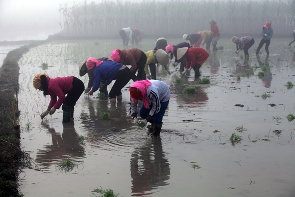 Ngoài những việc nặng nhọc của đàn ông như cày, bừa thì những việc khác như gieo cấy chủ yếu phụ nữ gánh vác.