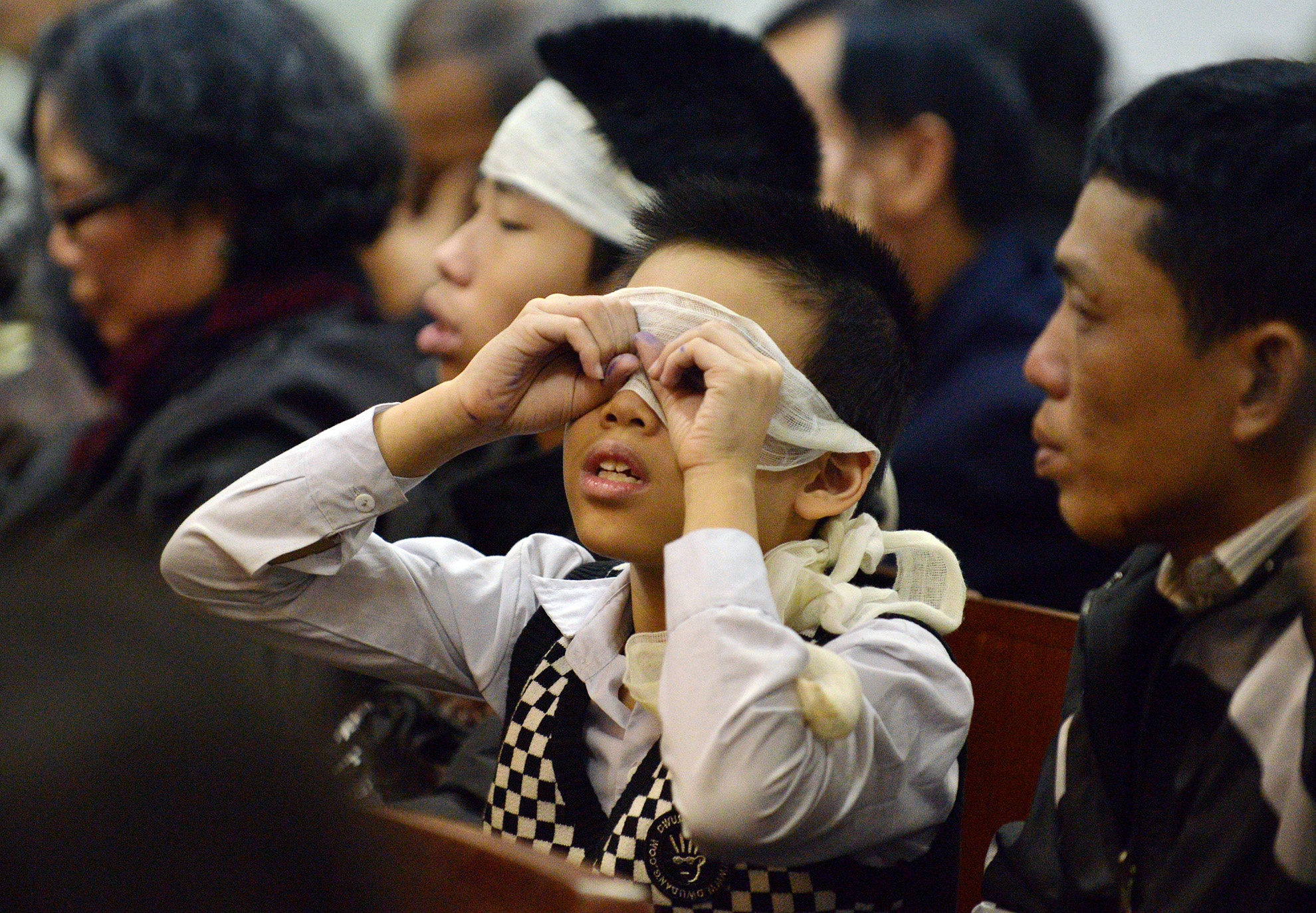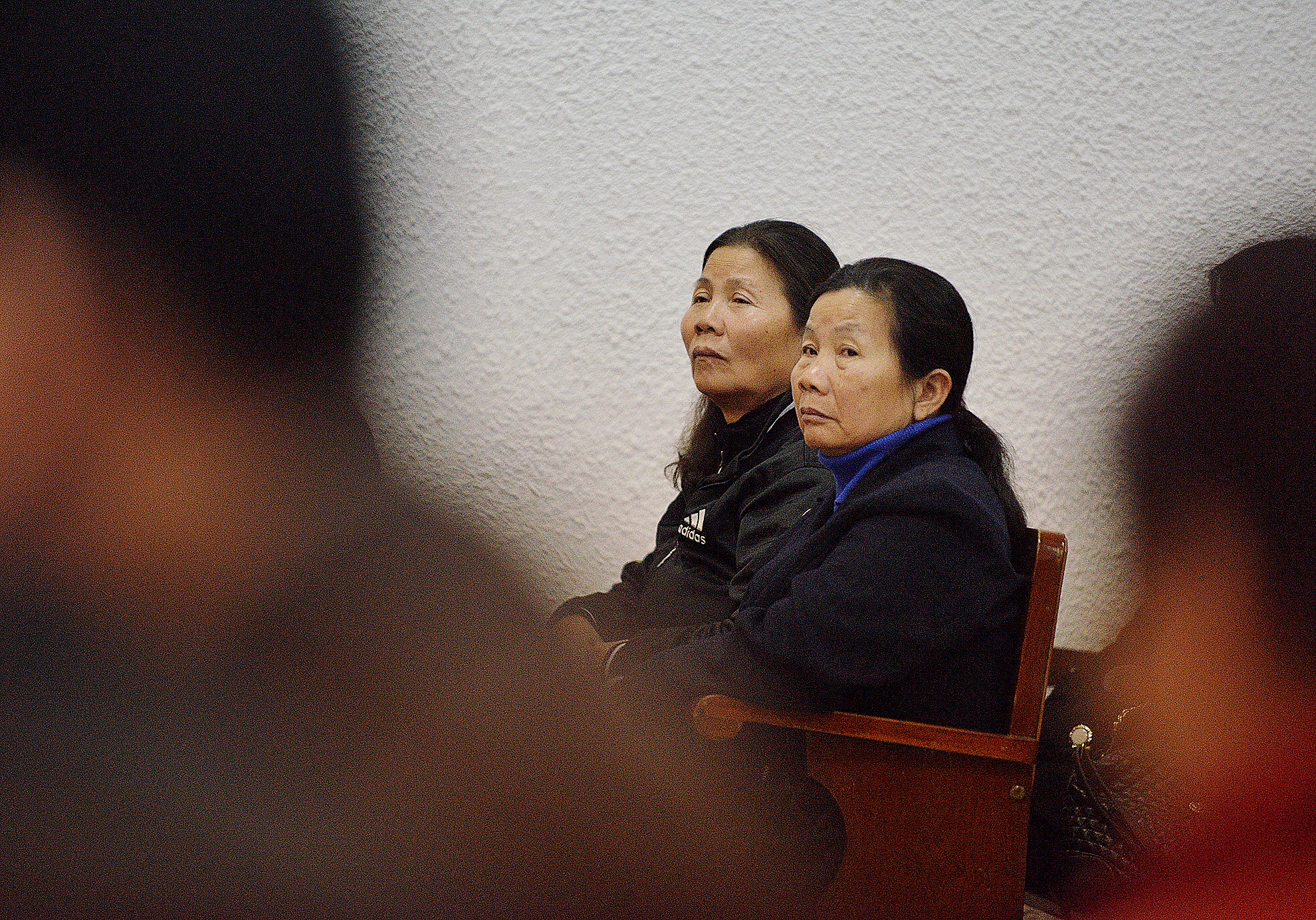 | Mẹ của bị cáo Khánh nhìn con từ xa. Bà và người thân ngồi lặng lẽ trong suốt 2 ngày tòa diễn ra. |