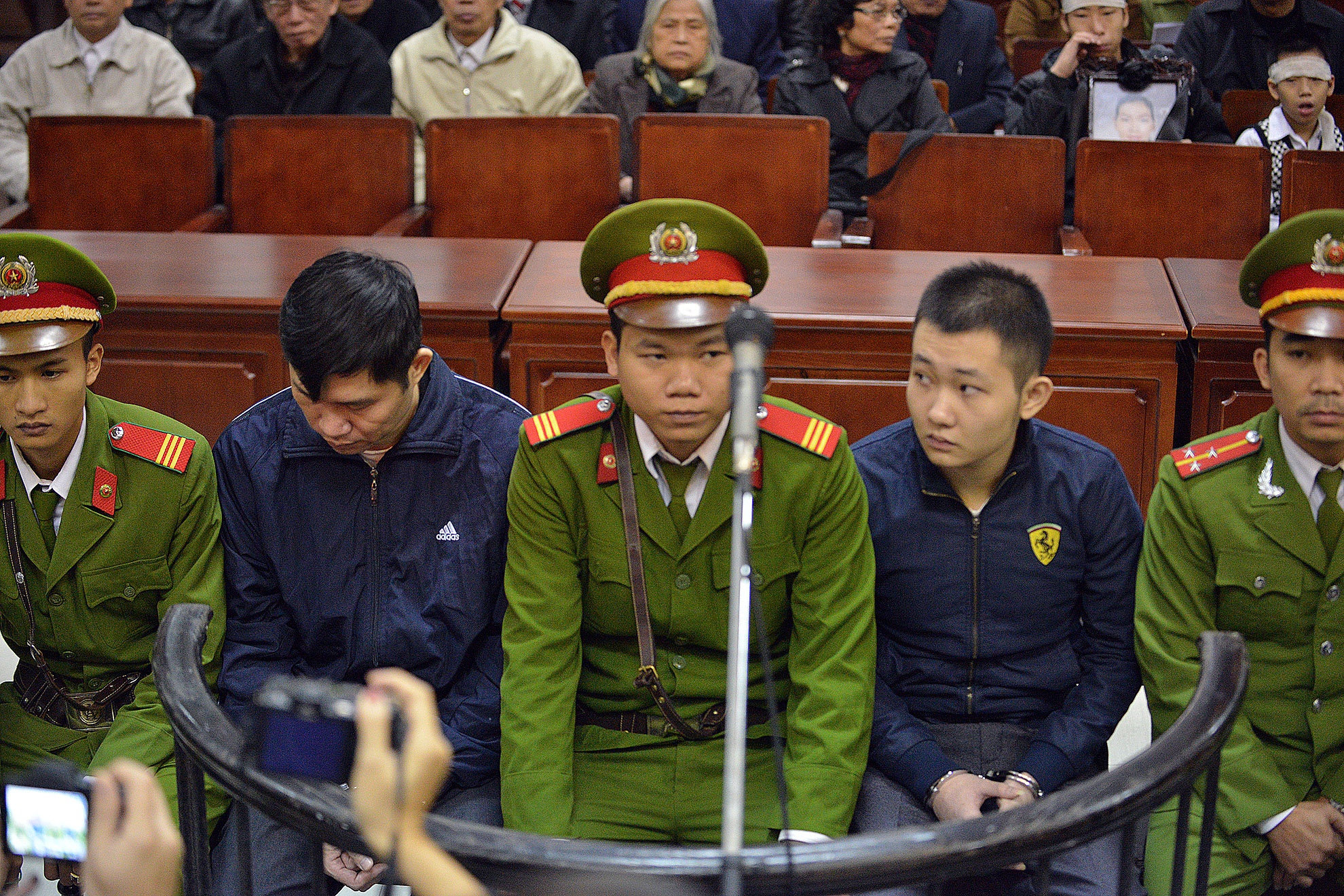| Kết thúc phiên xử, hai bị cáo Tường và Khánh được đưa về trại giam. |