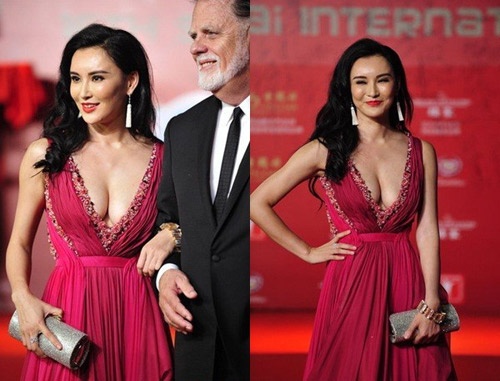 | Mạc Tiểu Kỳ lộ gò bồng đảo lệch lạc trên thảm đỏ. |