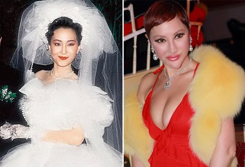 | Quá dễ để nhận ra vết tích dao kéo cứng đơ trên gương mặt Vương Thúy Nhi. |