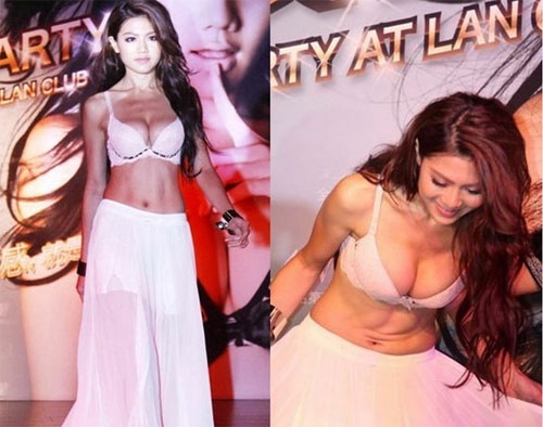 | Châu Tú Na dù cơ thể gầy gò nhưng lại sở hữu vòng 1 cứng đơ và đồ sộ. |