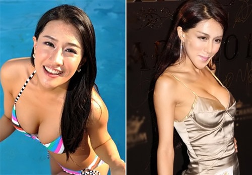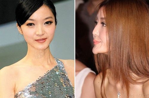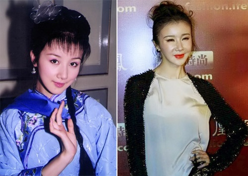 | Lý Dĩnh Chi là sản phẩm thất bại nhất nhì Cbiz với khuôn mặt biến dạng và gò bồng đảo méo lệch. Dù trước đó, cô sở hữu gương mặt tự nhiên (ảnh dưới, bên trái). |