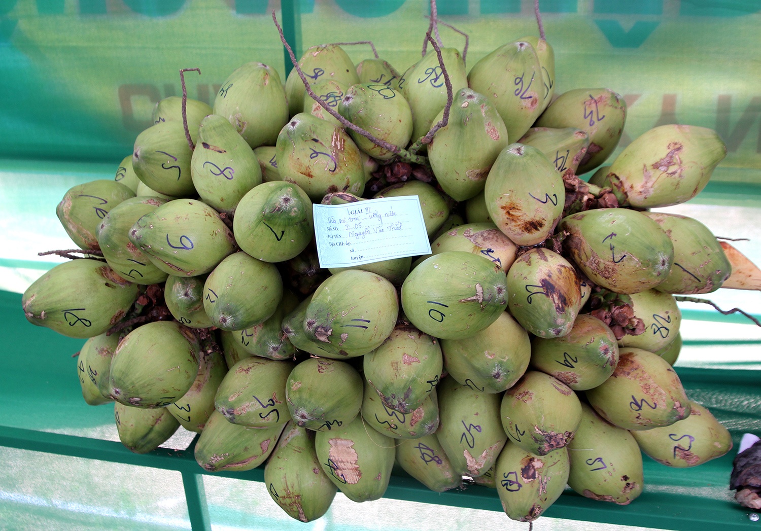 | Quầy dừa có đến 100 quả, đạt kỷ lục của triển lãm năm nay. |